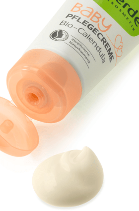 Pour le soin quotidien de la peau sensible de bébé - convient également aux adultes: la riche crème de soin pour bébé pour le visage et le corps d'alverde NATURKOSMETIK contient du calendula issu de culture biologique contrôlée et rend la peau délicate de bébé veloutée. Avec de l'huile d'amande issue de la culture biologique contrôlée, la formule précieuse protège la peau du dessèchement et soigne particulièrement les zones sèches de la peau.